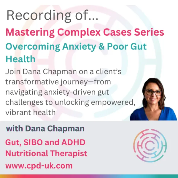 Join experienced NT Dana Chapman, gut health & ADHD specialist who is taking us through a complex case of anxiety and poor gut health. Learn about the links & triggers with the nervous system. Dana will take us through the client’s journey from anxiety and gut health issues to being empowered with gut health, mental clarity and personal growth.